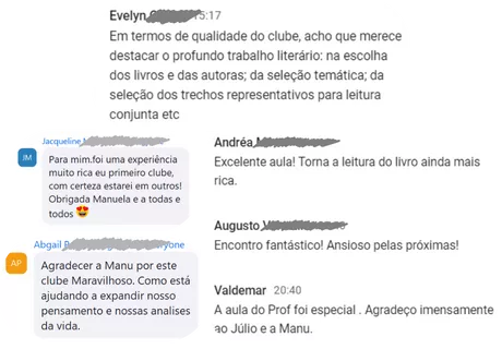 A primeira edição do clube dedicada exclusivamente à literatura brasileira produzida por mulheres foi fantástica. Depois, realizamos um clube especial apenas para desvendar “Um defeito de cor”, de Ana Maria Gonçalves.